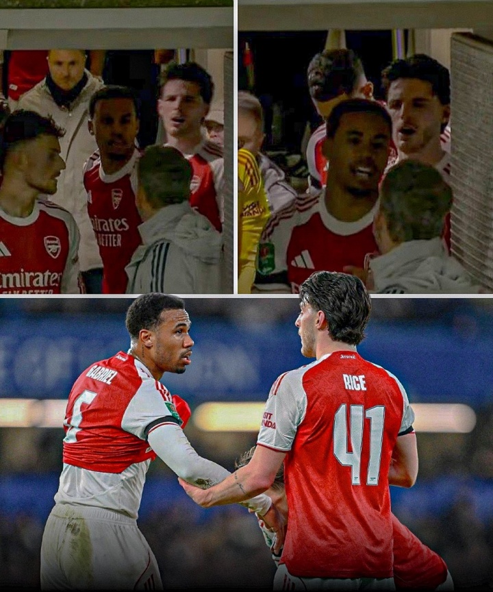 阿森纳对阵切尔西中场休息时间,赖斯与自家助教阿尔伯特发生争吵,双方随后被加布里埃尔调停。